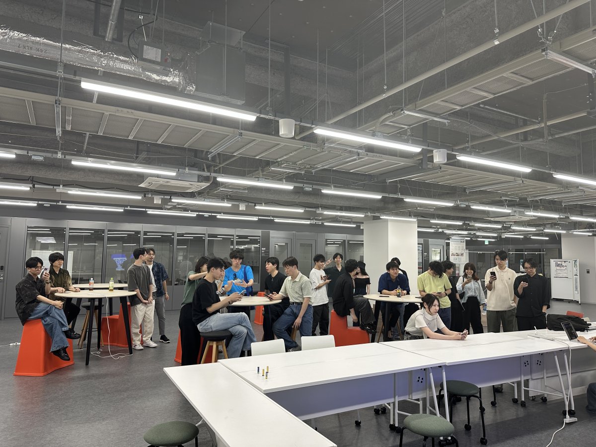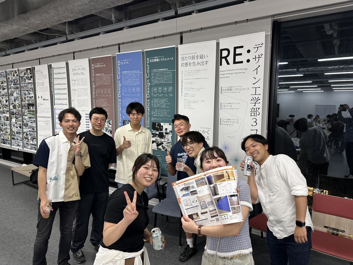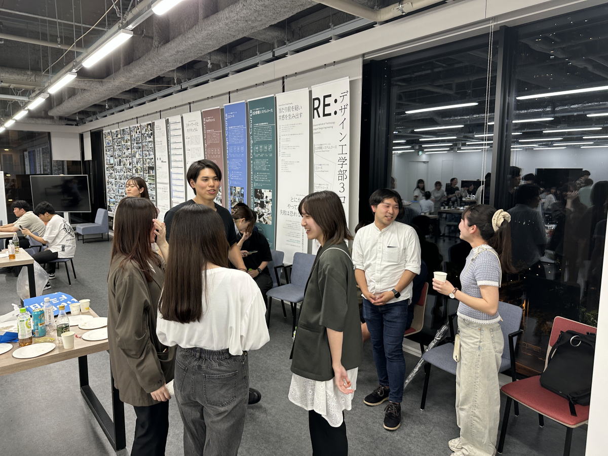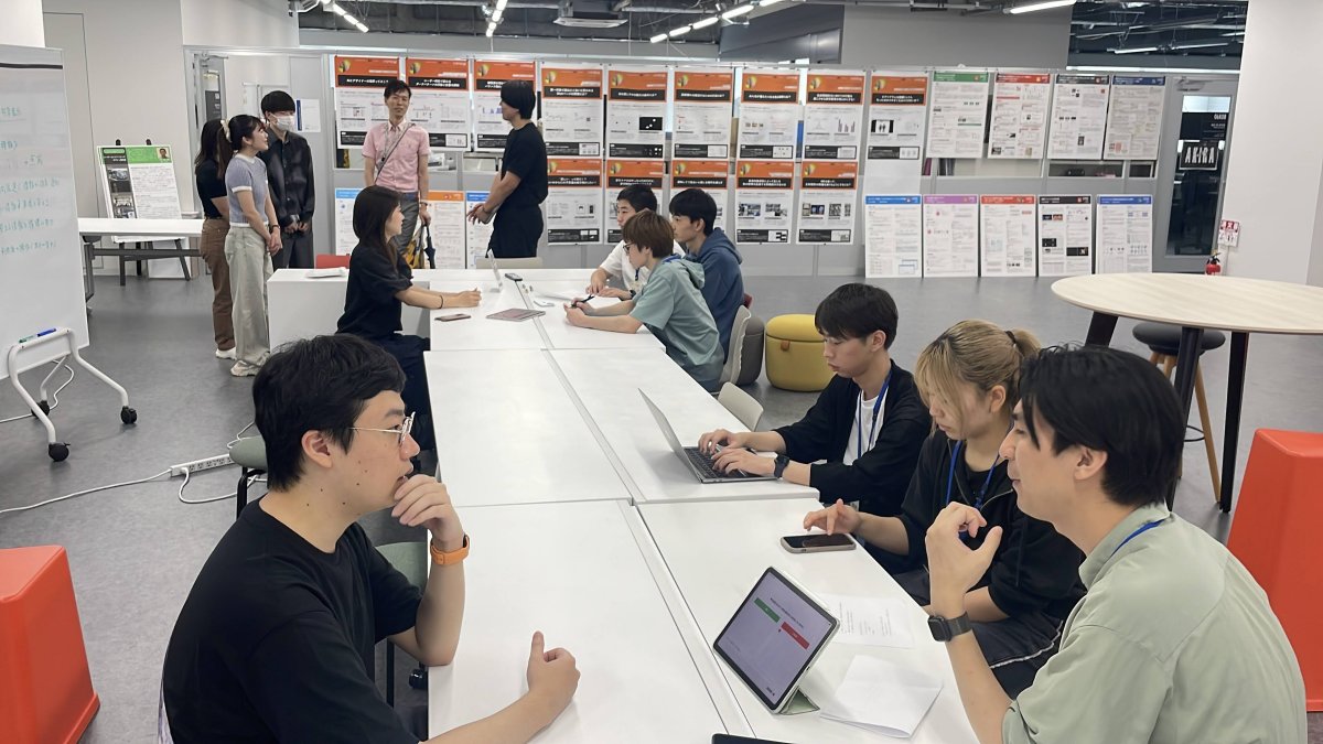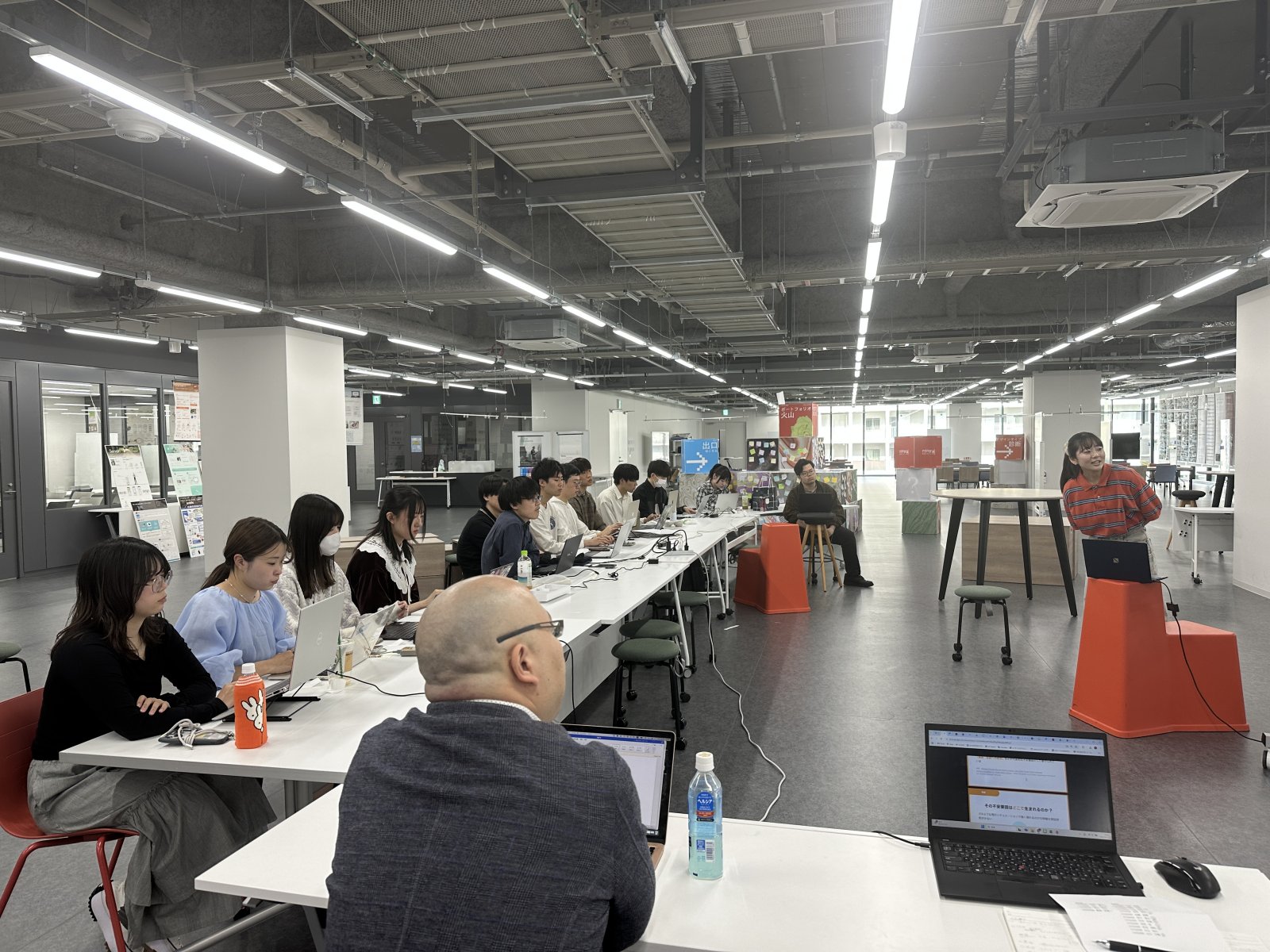 今年も4年生の有志を中心にインタフェ11を企画・推進してくれています。インタフェはデザイン工学部の4年生、院生がメンターとなり、3年生のためのUI/UXデザインワークショップです。今年は約50名の3年生が参加、過去最多の参加者数です。4年生のメンターも充実していてよい上下の交流の場になっています。中間発表会には、30名ほどのOB/OGがかけつけてくれて、あたたかいアドバイスが飛び交っていました。終了後はオープンラボでの懇親会。社会人の先輩に就活のことなども相談できてとてもよい機会になっています。最終発表会へ向けてがんばっていきましょう。