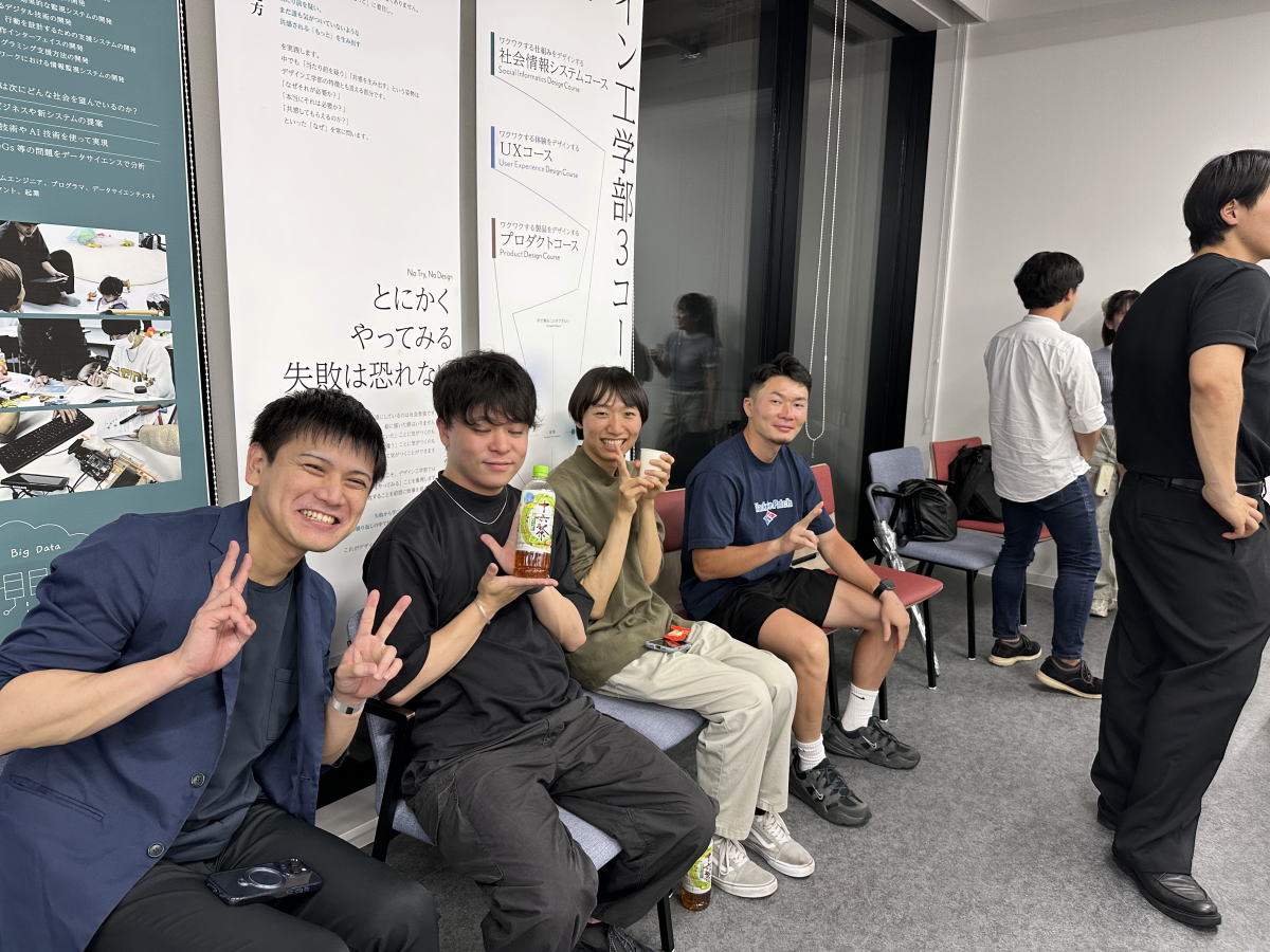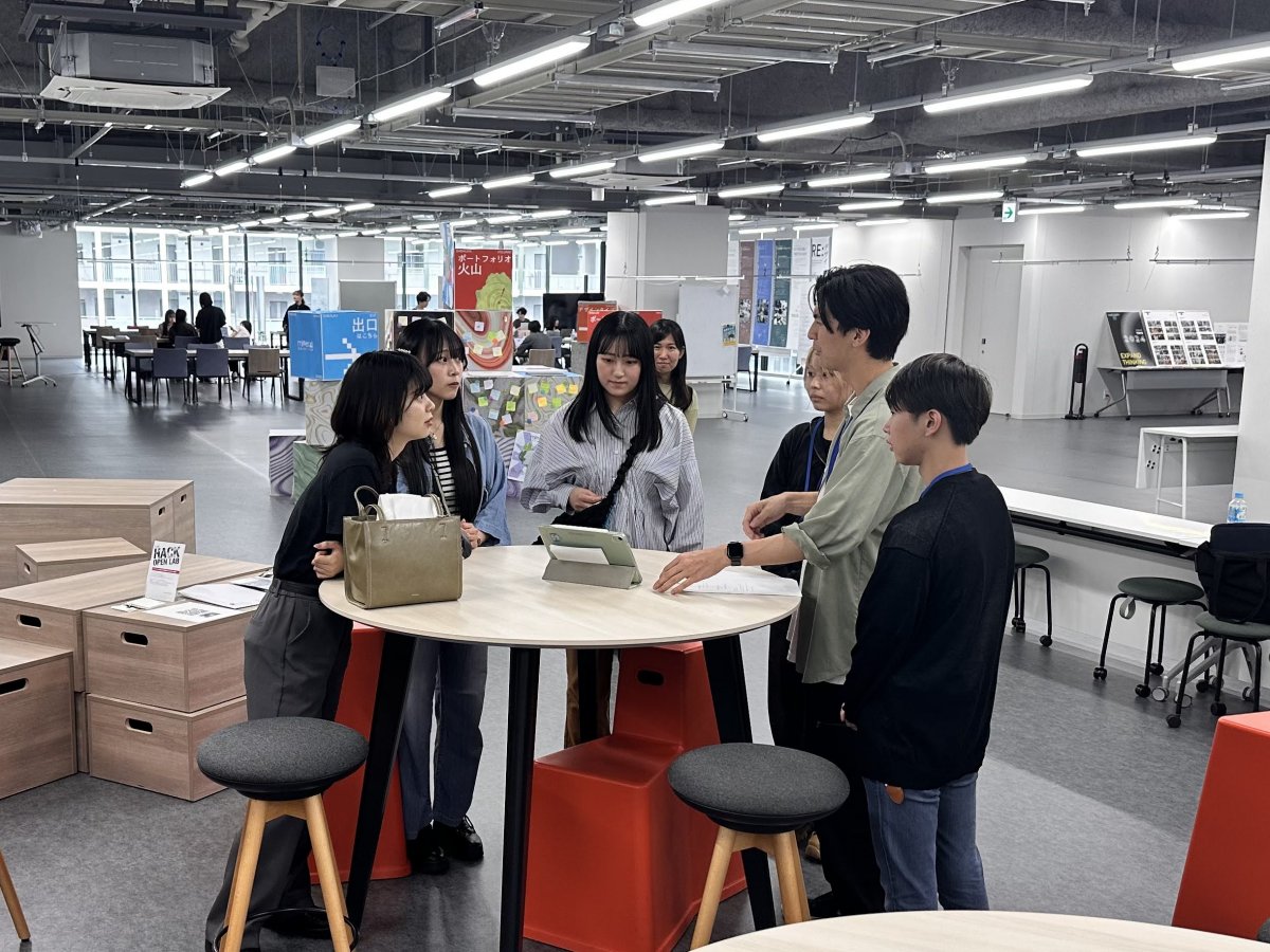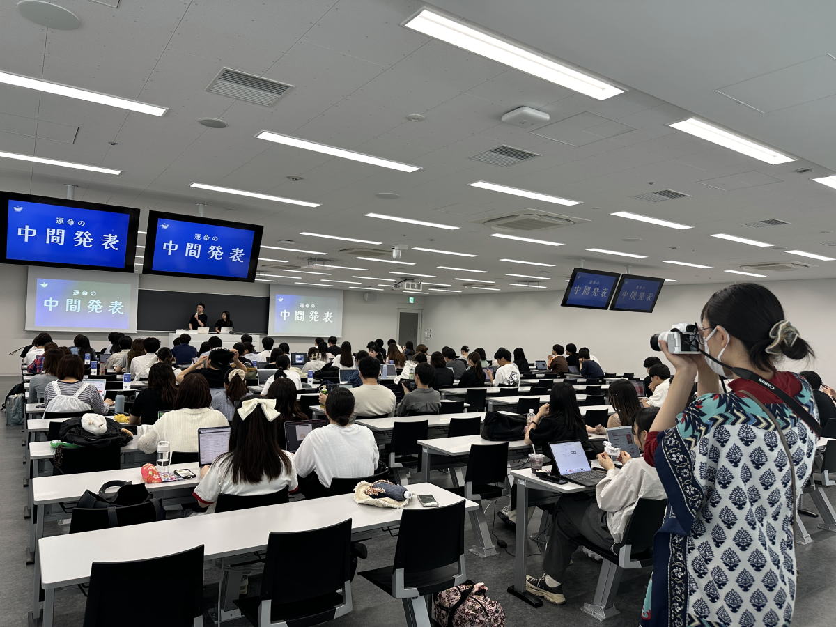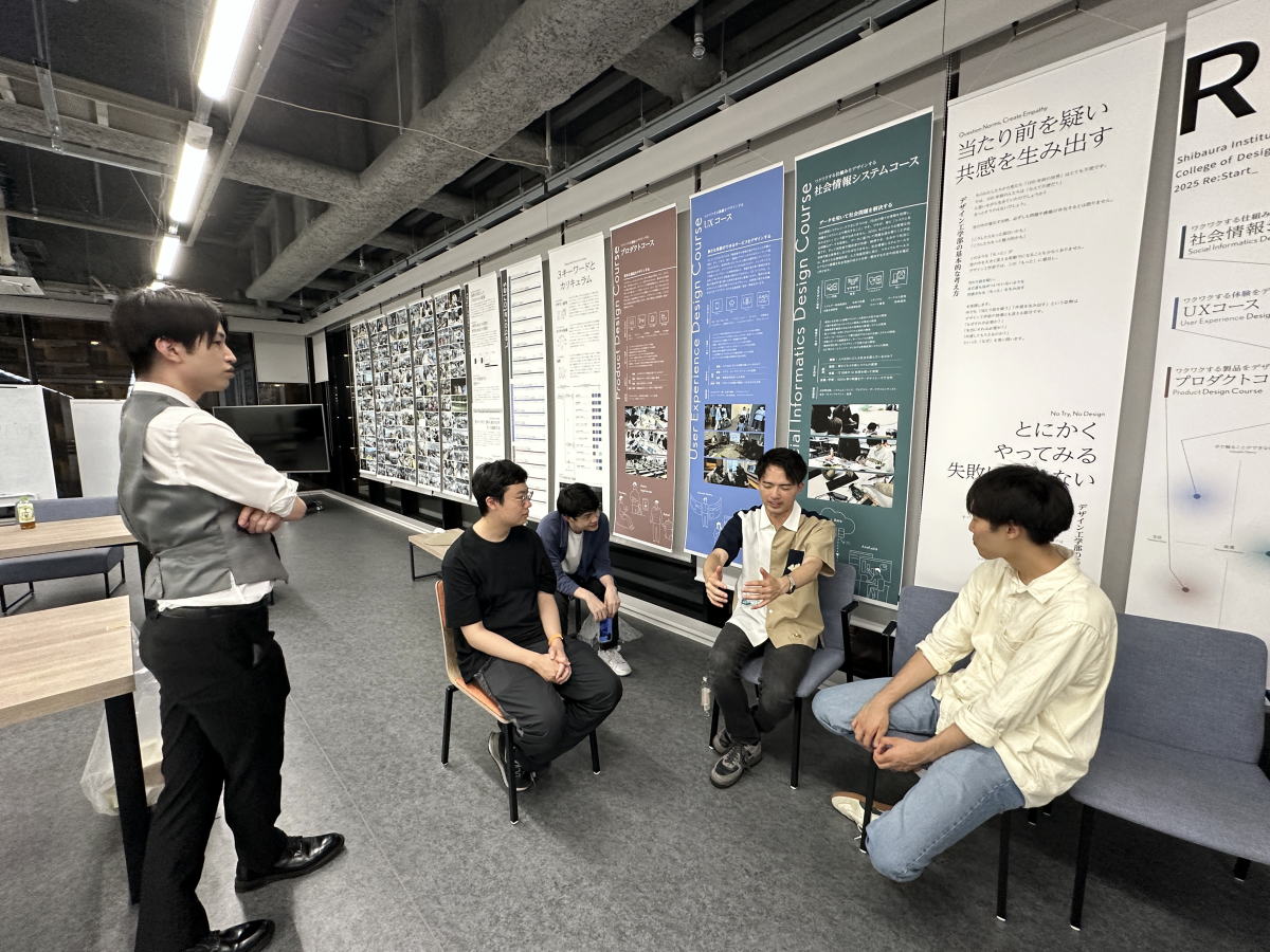 今年も4年生の有志を中心にインタフェ11を企画・推進してくれています。インタフェはデザイン工学部の4年生、院生がメンターとなり、3年生のためのUI/UXデザインワークショップです。今年は約50名の3年生が参加、過去最多の参加者数です。4年生のメンターも充実していてよい上下の交流の場になっています。中間発表会には、30名ほどのOB/OGがかけつけてくれて、あたたかいアドバイスが飛び交っていました。終了後はオープンラボでの懇親会。社会人の先輩に就活のことなども相談できてとてもよい機会になっています。最終発表会へ向けてがんばっていきましょう。