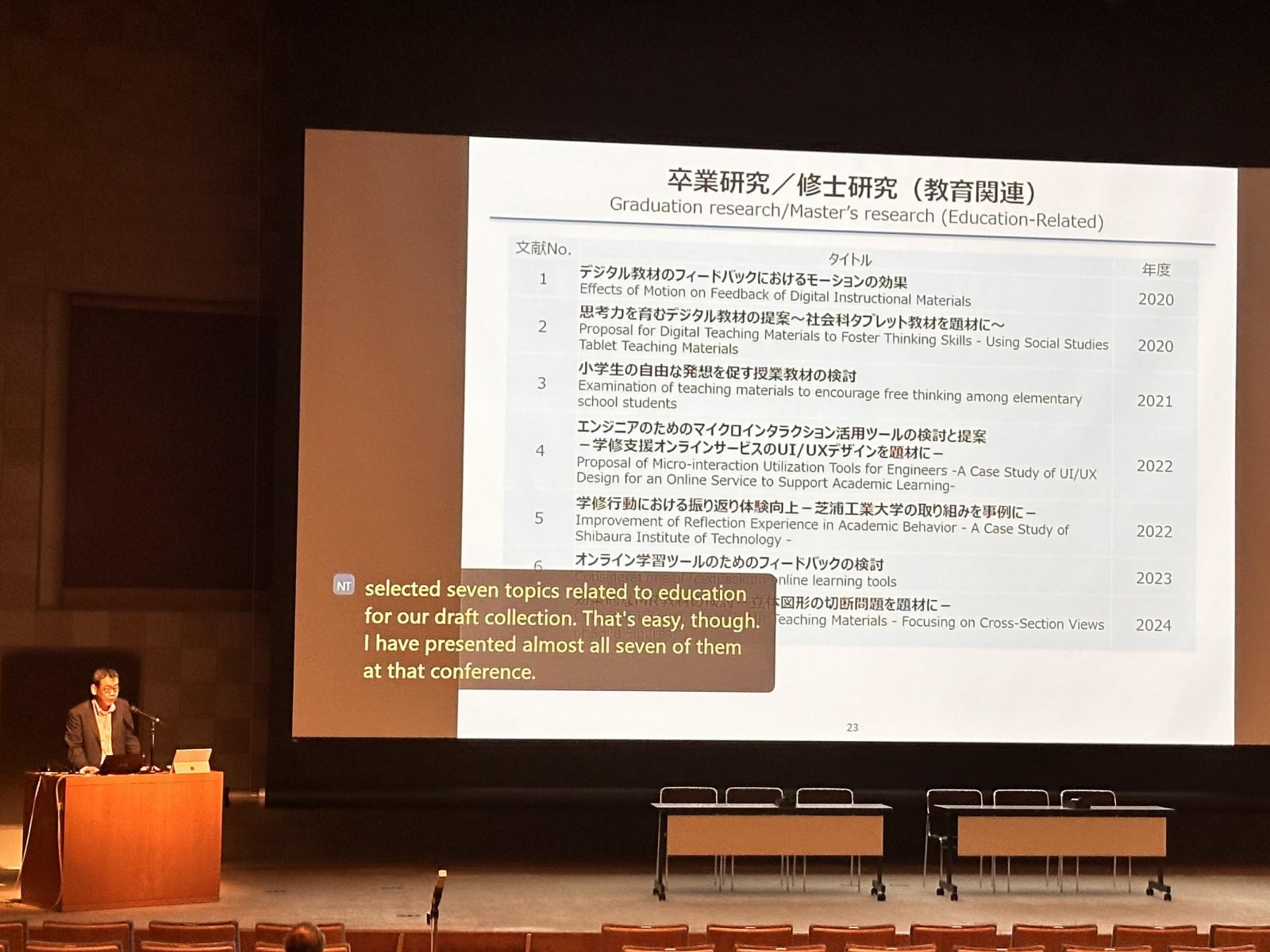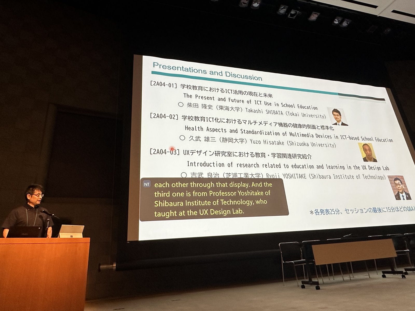 子どもICTプロジェクトによるOSにて、「UXデザイン研究室における教育・学習関連研究紹介」というタイトルで登壇しました。これまでの研究室での研究や3年生のプロジェクト演習による未来の学習・教育のデザイン提案を紹介し、学校教育におけるICD/デジタル技術活用の特徴について言及しました。初日の夜に開催された理事会の懇親会や最終日に開催された懇親会にて多くの方と交流できとても楽しく、有意義な機会になりました。大会長の榎原毅先生をはじめ、多くの方にお世話になりました。ありがとうございました。
