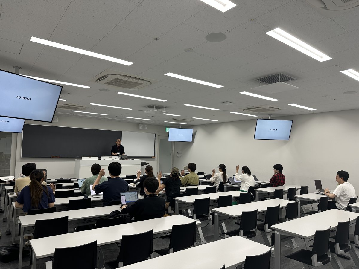 プロジェクト演習16の2Qの2回めに、富士フイルムの岡部様にお越しいただき、会社/デザインセンターの概要、そしてお仕事の様子などをご紹介いただきました。岡部様、ありがとうございました!
