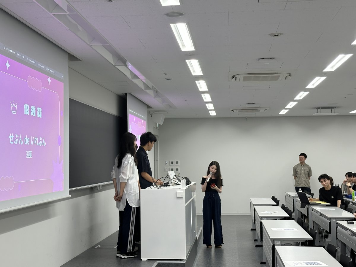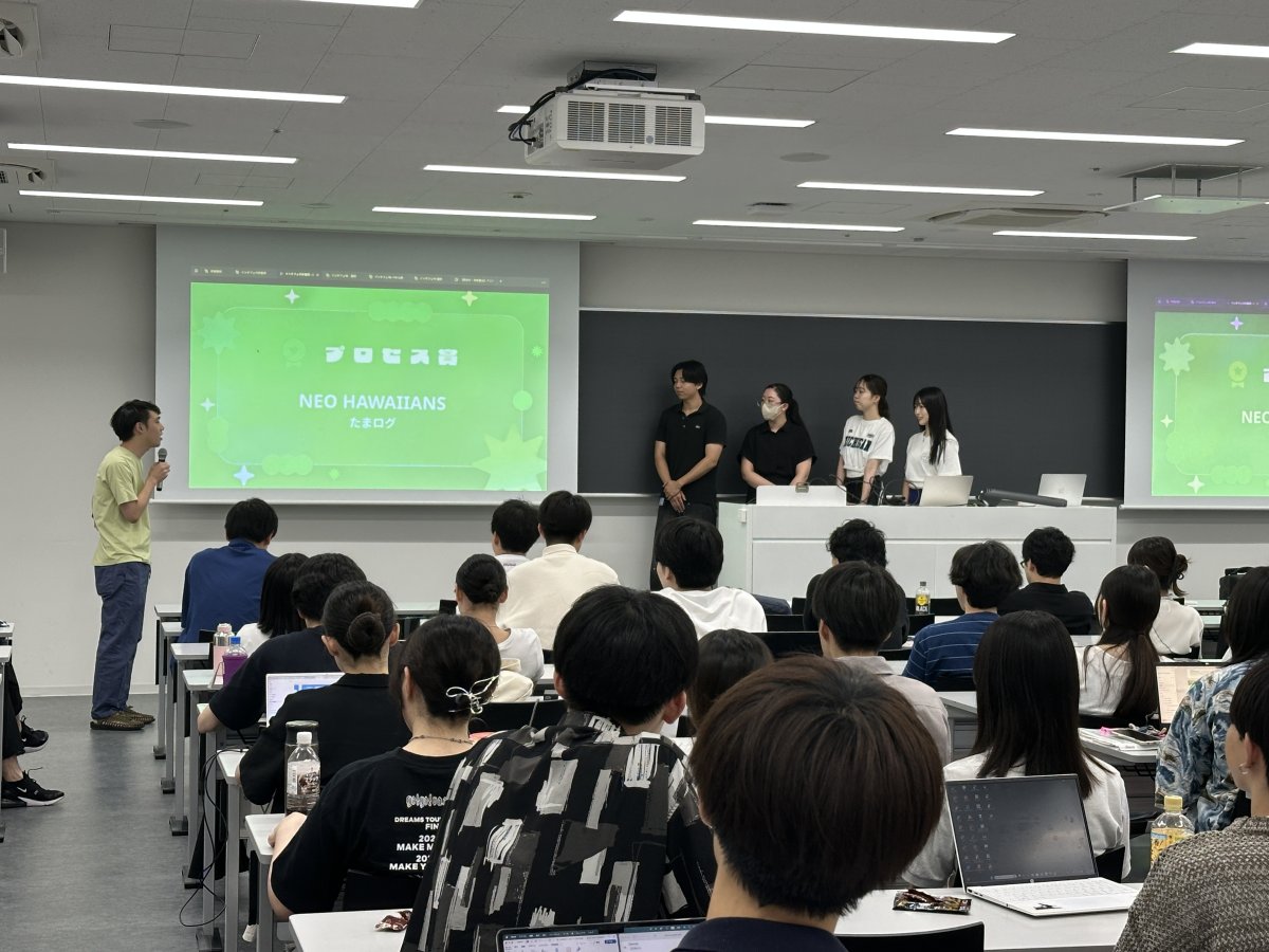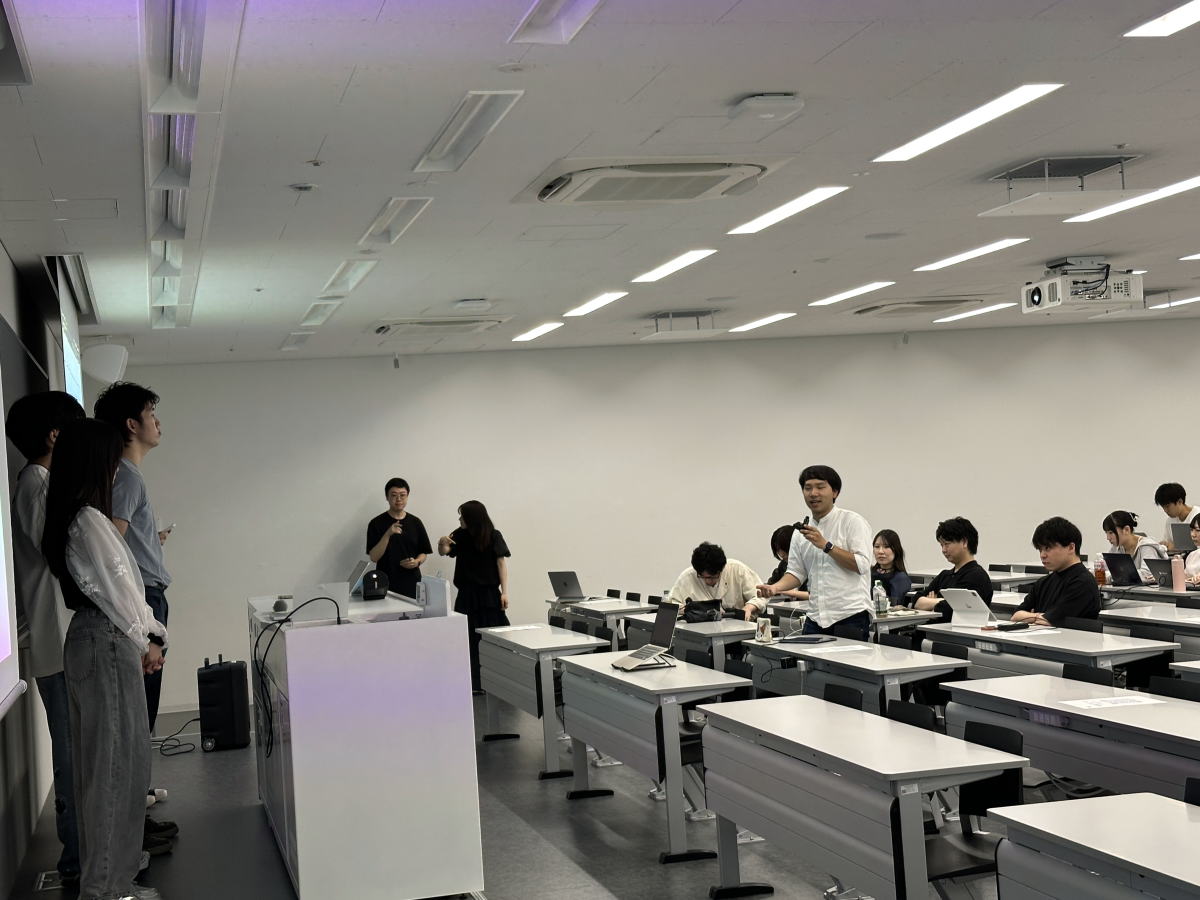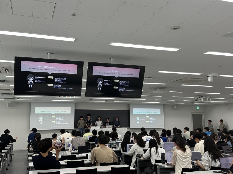 2年生のUXデザイン演習、前半の最終発表会。今年の履修者は96名、前半は16のグループにわかれて、「大宮キャンパスでのお昼休みのよい体験」をテーマに活動してきました。前半はKA法やペルソナ・シナリオ法などUXデザイン手法を体験することを重視し、後半はグループごとに力を合わせてデザイン提案に取り組み、全グループ、よい発表でした。担当の先生方、TAのみなさんもお疲れさまでした。後半は個人提案になりますので、前半の経験をいかしてしっかり取り組んでいきましょう。