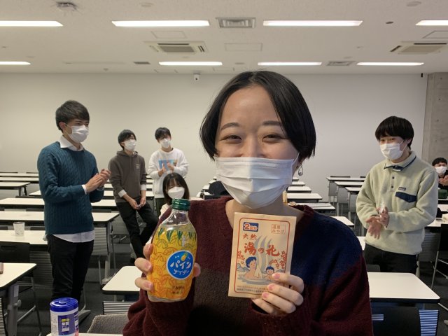 今年は研究室の年末イベントとして、交流会を開催しました。在学生が現在取り組んでいる研究を紹介し、参加した卒業生から質問やアドバイスをいただくことができ、とても有意義だったと思います。研究紹介後は、現役生が企画したビンゴやゲームをにて盛り上がり、卒業生と交流するよい機会になりました!企画や賞品の準備などいただいた現役生のみなさん、ありがとう。そして卒業生のみなさん、参加いただきありがとう!